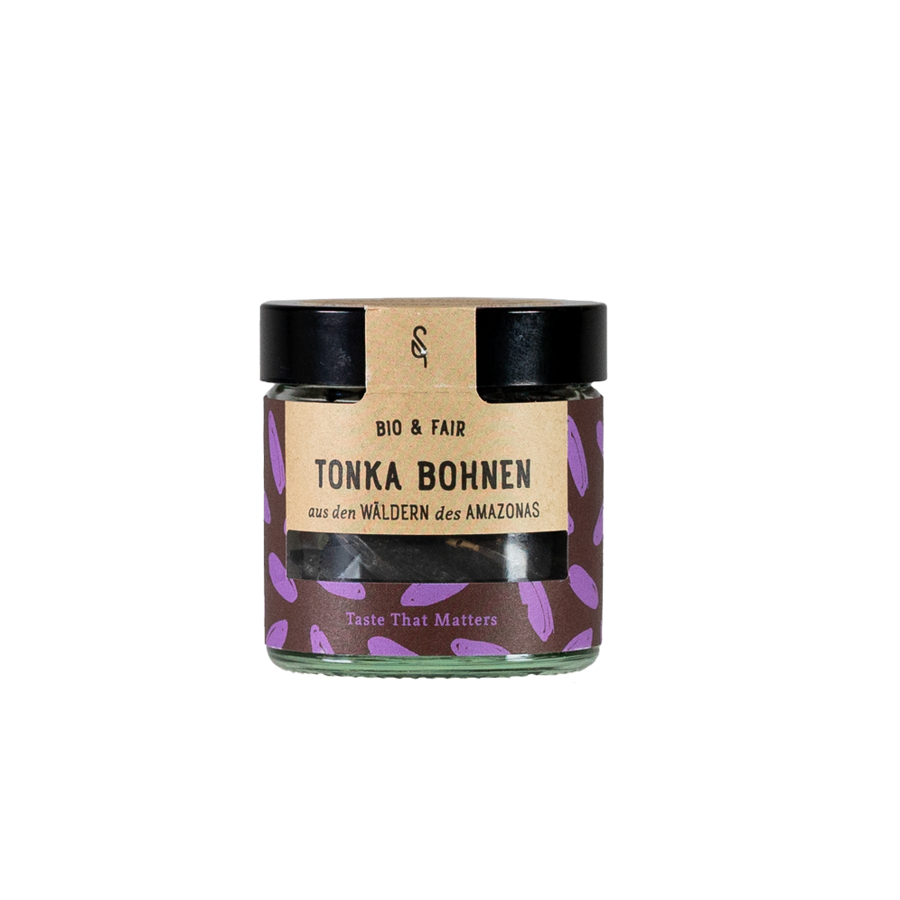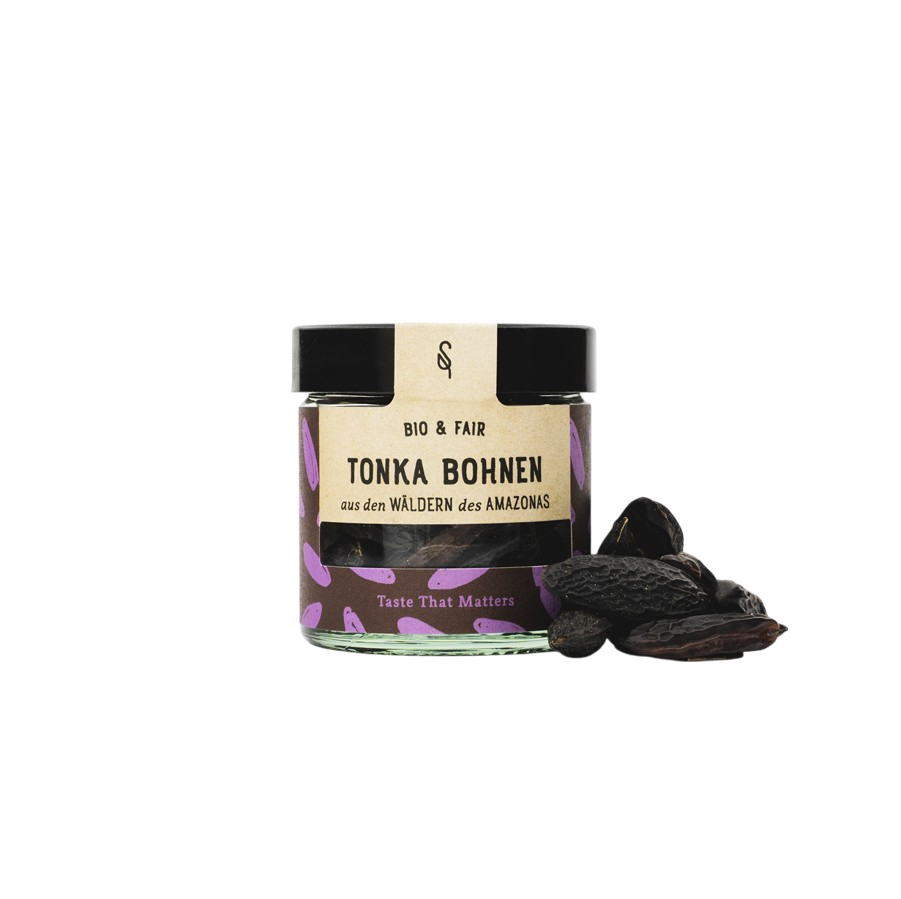 Der Geschmack von Tonkabohnen erinnert an Vanille und Mandel. Die Tonkabohne findet Verwendung in feinen Desserts und Süßspeisen. Man kann mit Tonkabohnen Cremes, Kuchen, süßes Gebäck oder Eis veredeln. Besonders gut macht sich die feine blumige Note der Tonkabohne beispielsweise in Panna Cotta oder Crème Brulée.