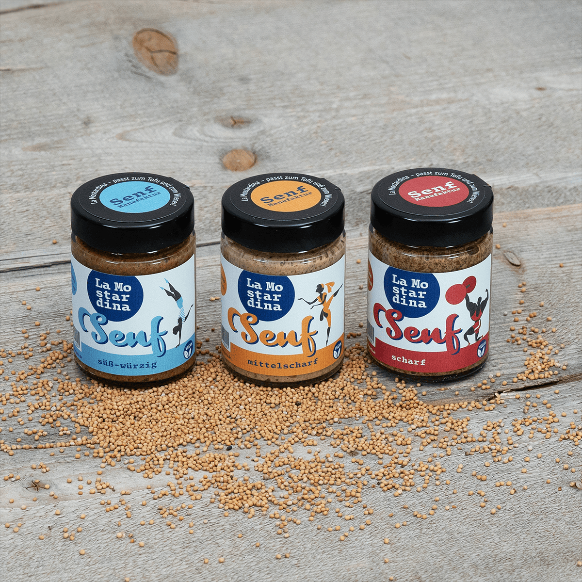 Süß trifft Senf. Unsere süße Variante: La Mostardina süß-würzig ist ein gekonntes kulinarisches Kunststück, geprägt von feinen Aromen: Balsamico und Holunder. Perfekt für die kreative Küche und zum Verfeinern von Gemüse, Salaten, Fisch oder Fleisch. Unser süß-würziger Senf lässt Sie diese Gerichte durch seinen charmanten italienischen Charakter neu entdecken. Überzeugen Sie sich selbst.