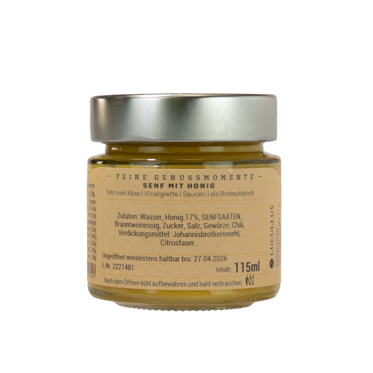 Einen wahren Genussmoment erlebt man mit dem Honig Senf von Lucullus. Dieser Senf eignet sich sowohl zu Käsespezialitäten, Saucen oder als Brotaufstrich. Ein herausragender Genuss für Feinschmecker