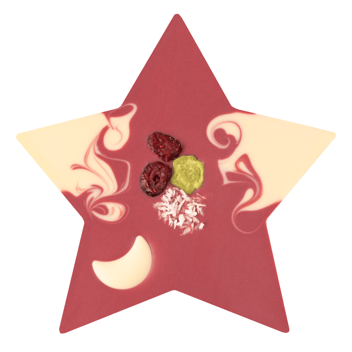 Stern aus Himbeer-Kokos-Kuvertüre mit Dekor