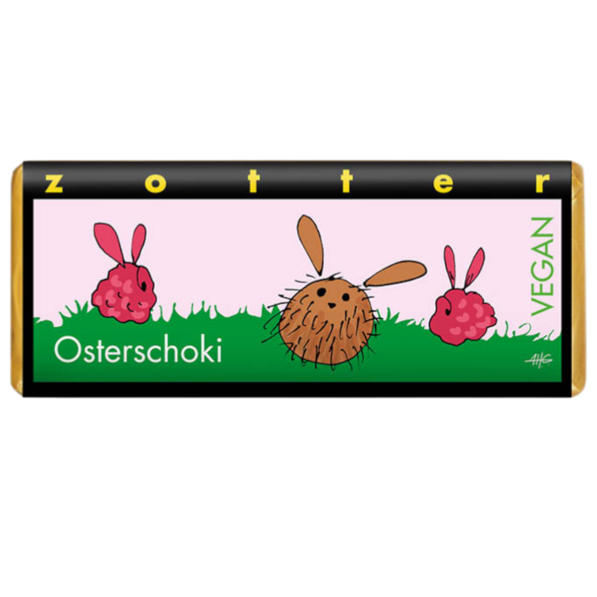 Diese dunkle Milchschokolade ist abwechselnd geschichtet mit Himbeerkuvertüre und verfeinert mit einer weißen Kokosfüllung, abgerundet mit einem Spritzer Ananassaft und Zitrone. Diese Komposition ist ein wahrer Genuss für alle Feinschmecker. Verschenken Sie mit den Schokoladentafeln von Zotter süße Ostergrüße.