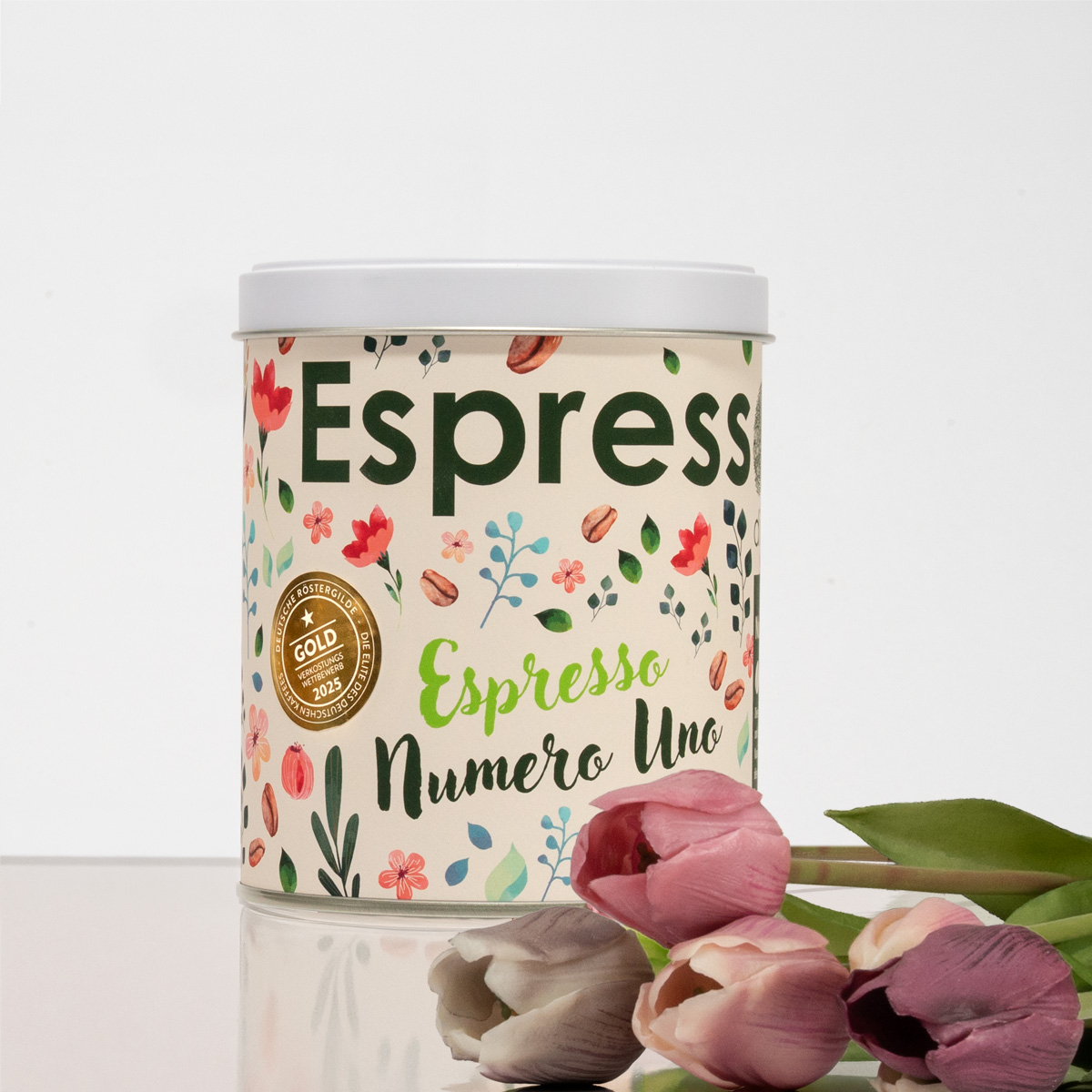 Diese limitierte Sonderedition in der Dose ist mit unserer beliebten Bio Numero Uno Espressoröstung gefüllt und lädt zu einem genussvollen Start in den Frühling ein. Mit der feinen fruchtigen Note und dem vollem Aroma von Edelbitterschokolade begeistert sie jeden Kaffee-Liebhaber. Diese ausgewählte Röstung ist perfekt geeignet, um die Oster-Feiertage entspannt zu genießen oder den Osterbrunch mit einem außergewöhnlichen Espresso abzurunden. Unser limitierter Frühlings-Kaffee von Espressone ist eine Einladung, die sonnigen Tage mit Genuss zu beginnen. Ideal als Geschenk zu Ostern, um jemandem eine Freude zu bereiten oder zum selbst Genießen.
