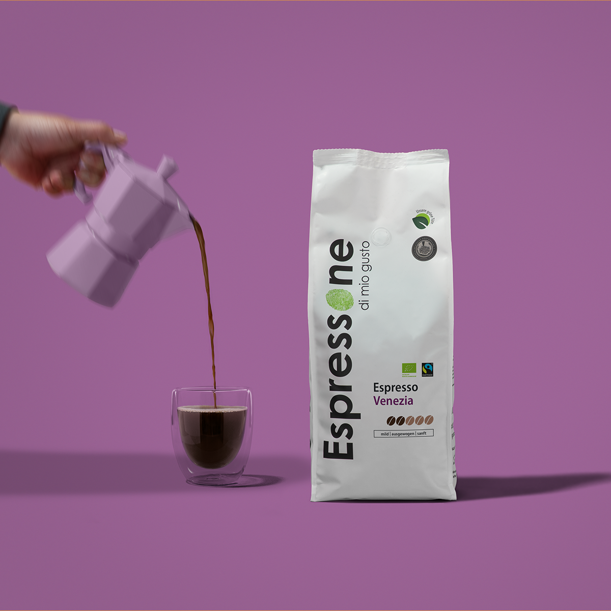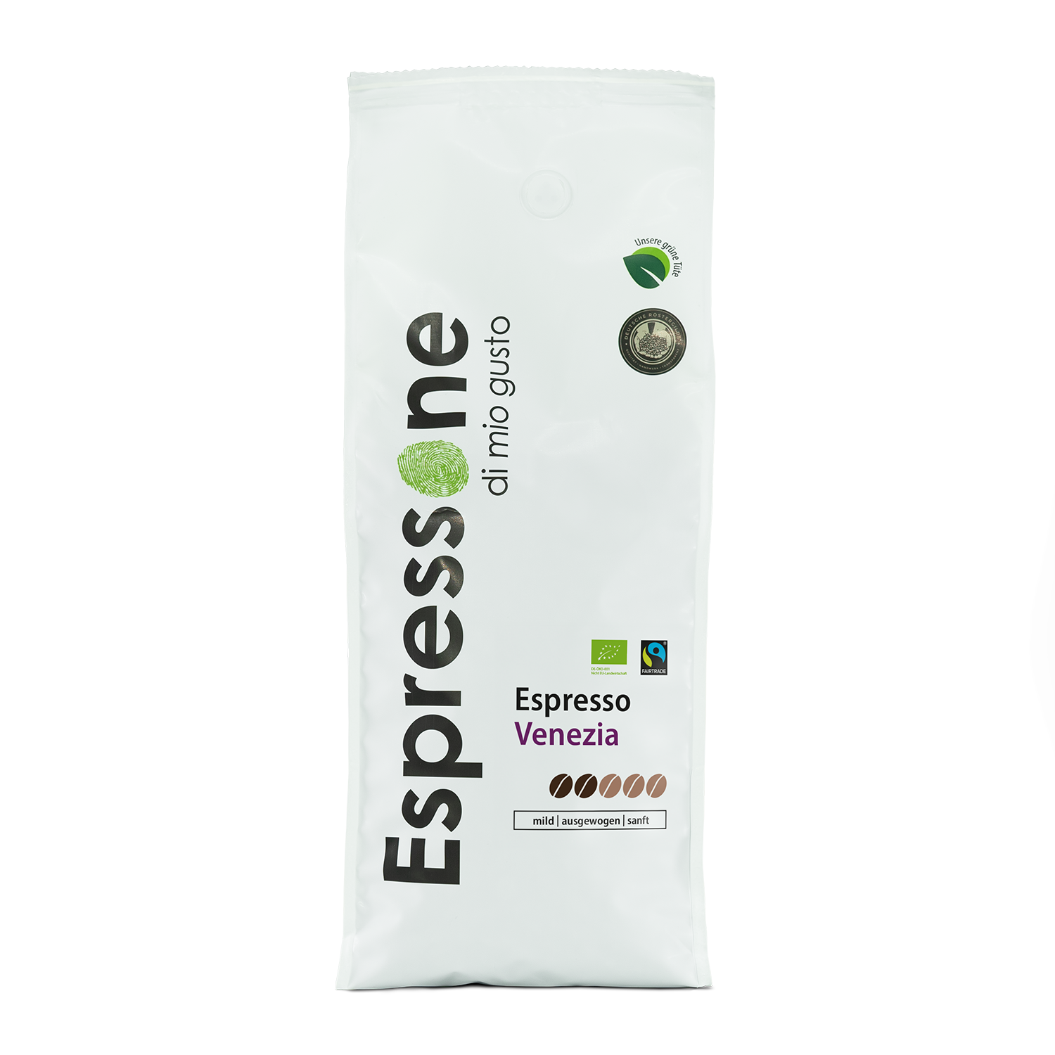 Die etwas hellere Röstung verleiht diesem Bio und Fairtrade Espresso einen weichen und milden Geschmack. Er zeichnet sich durch seine Ausgewogenheit und seine feine Säure aus. Der Espresso Venezia ist somit auch perfekt für die Zubereitung eines langen Kaffees geeignet.