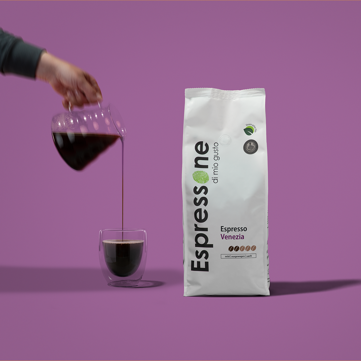 Die etwas hellere Röstung verleiht diesem Espresso einen weichen und milden Geschmack. Er zeichnet sich durch seine Ausgewogenheit und seine feine Säure aus. Der Espresso Venezia ist somit auch perfekt für die Zubereitung eines langen Kaffees geeignet.