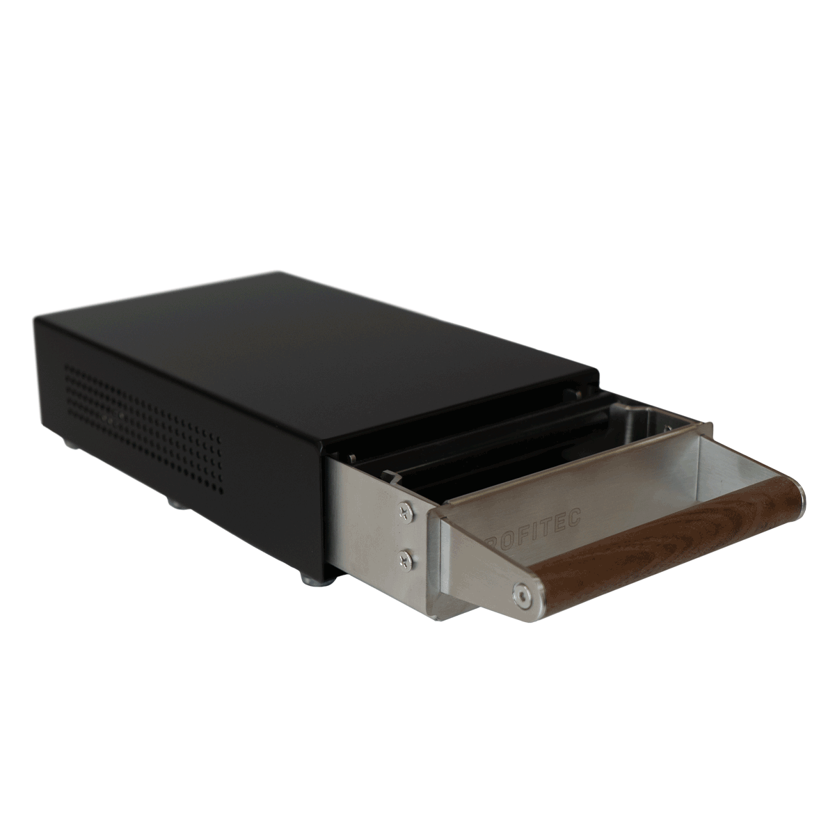 Die Sudschublade in schwarz matt aus dem Hause Profitec punktet nicht nur in Sachen Qualität. Die gekonnte Kombination aus der mattschwarzen Sudschublade mit dem hochwertigen Holzgriff ist ein absoluter Blickfang für Ihre Kaffee-Ecke. Ein Muss für jeden Barista, der es edel mag.