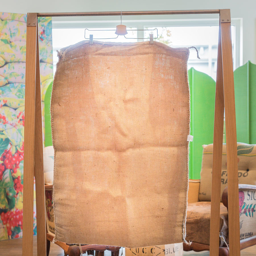 Der Kaffeesack hat bereits viel gesehen, er wurde für den Transport von Rohkaffeebohnen aus Indien in unsere Rösterei verwendet und trägt den Aufdruck der Kaffeefarm. Der Kaffeesack besteht aus strapazierfähigem Jutegewebe und ist sehr reißfest. Somit eignet er sich perfekt zum Nähen und Basteln, aber natürlich auch als Erntesack.
